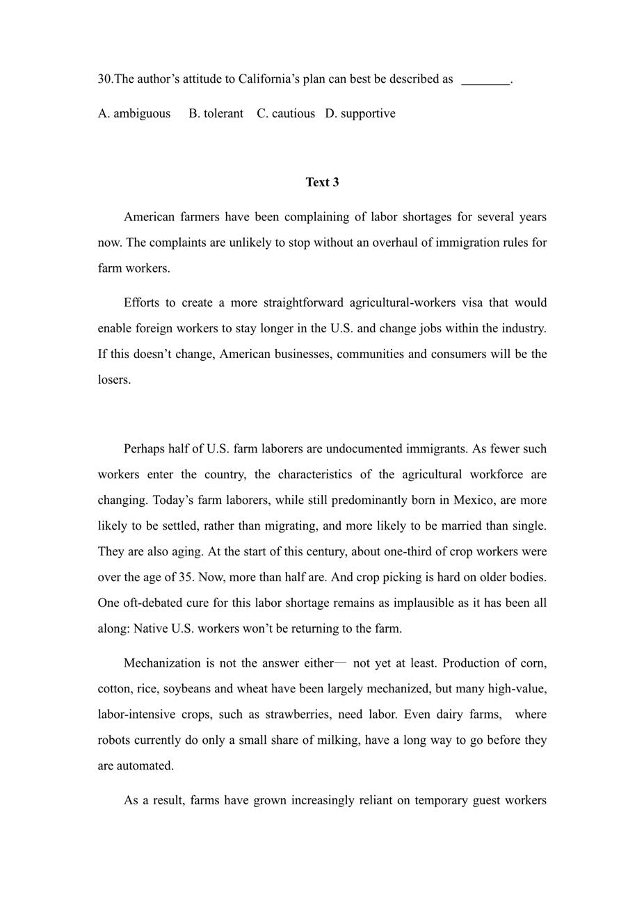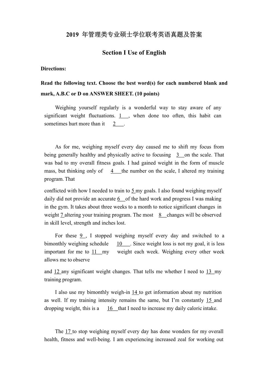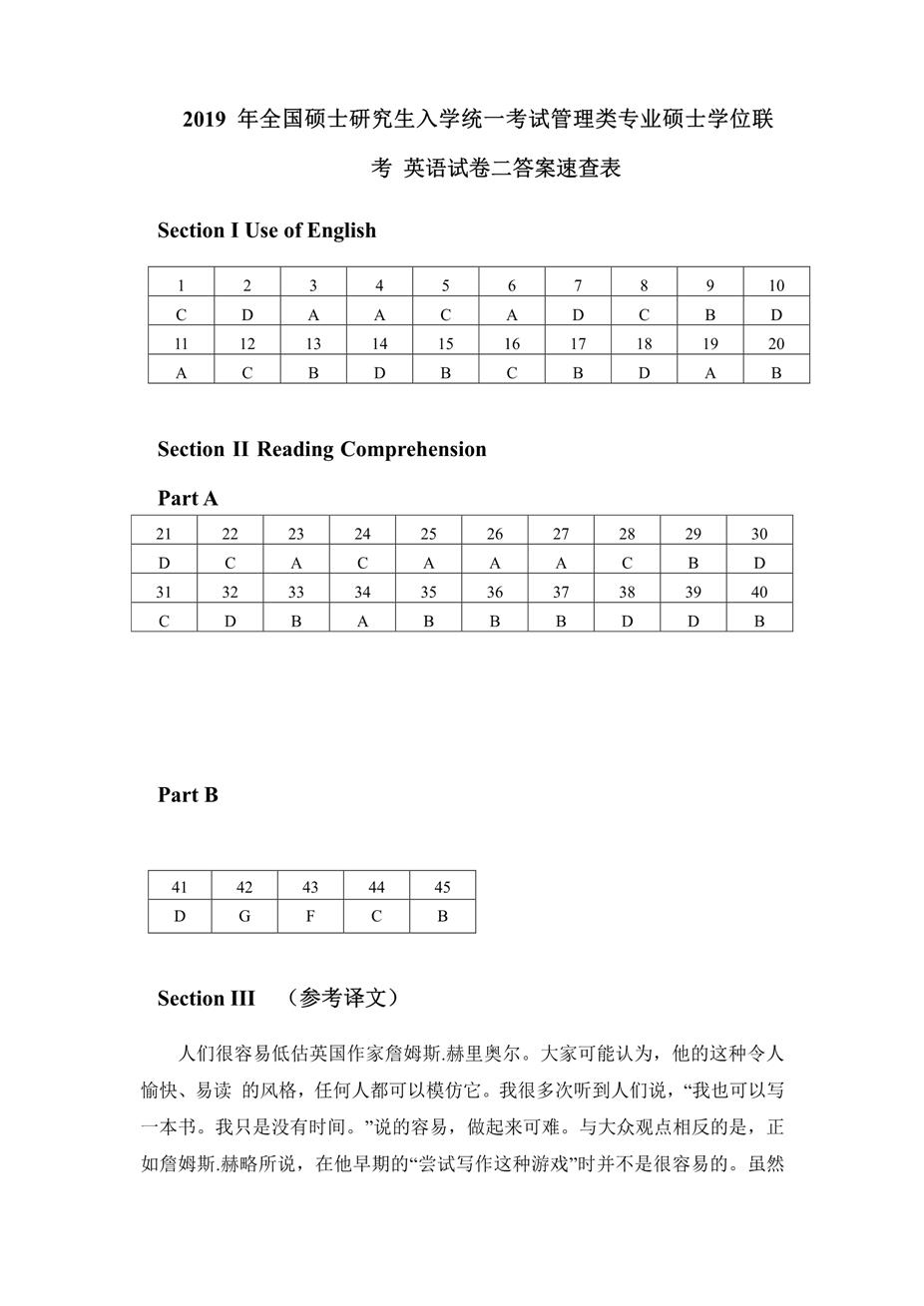 2019年英語二真題和答案